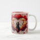 A romantic silhouette of a couple in an embrace, surrounded by a vibrant heart and scattered red petals. Perfect for wedding invitations and Valentine's Day celebrations, capturing the essence of love and togetherness