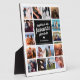 Celebrate your love story with this personalised couple or newlyweds photo plaque, perfect for Valentine’s Day, anniversaries, weddings, or just because. Featuring a crisp white background (easily customisable to any colour), this plaque showcases 16 of your favourite photos, a trendy black square with the couple’s names, a classic white heart symbol, and the heartfelt phrase “Together is Our Favourite Place to Be”.
