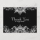 DESIGN COLLECTION: These postcards make a very classy, green and yet elegant option for your Thank You Note Cards. This is a truly elegant and sophisticated Wedding Invitation Collection with a formal modern vintage flair! Shown here in white on black, the invitation has an elegant dramatic appearance. For a beautiful finishing touch select the matching invitation envelope of the same design. This is artwork designed by Audrey Jeanne Roberts created from antique vintage etched printer's decorative ornament elements that have been created into a damask pattern. There are RSVP response cards, Reception Invitations, Wedding Program, Driving instructions, Hotel Accommodation cards, postage, stickers and more available to match. If there's a product you would like to have created that isn't offered just message us!