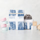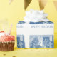Beautiful antique illustration of a vintage Christmas blue toile Holiday wrapping paper. The message says Happy Holidays in toile blue font.