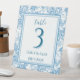 Toile Chinoiserie French Blue Table Number Pedestal Sign