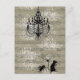 Toile background overlaid with music sheet and cameo's of a chandelier and Critters in the corner. Mouse Dragonfly and cricket.