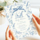 Celebrate the upcoming arrival of your little one with our charming Safari Giraffe Baby Shower Invitation. This exquisite design features a delightful blue Toile De Jouy pattern adorned with playful giraffes and elephants, complemented by a whimsical coquette bow. Perfect for setting a joyful tone for your baby shower, this invitation not only captures the essence of a safari adventure but also adds a touch of elegance to your celebration. Invite your guests in style and create lasting memories with this enchanting invitation.