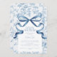Toile De Jouy Blue Bow Baby Shower Invitation