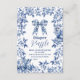 Add an elegant touch to your baby shower festivities with our Toile De Jouy Bow Baby Shower Diaper Raffle Enclosure Card. This charming card features the classic Toile De Jouy pattern, showcasing intricate pastoral scenes that bring a sense of sophistication and grace to your celebration. The delicate bow accent adds a sweet detail that perfectly complements the invitation and other themed decor.