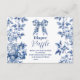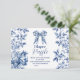 Add an elegant touch to your baby shower festivities with our Toile De Jouy Bow Baby Shower Diaper Raffle Enclosure Card. This charming card features the classic Toile De Jouy pattern, showcasing intricate pastoral scenes that bring a sense of sophistication and grace to your celebration. The delicate bow accent adds a sweet detail that perfectly complements the invitation and other themed decor.