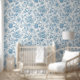 Refresh any room decor with our new wallpaper design, featuring an elegant Toile-de-Jouy Chinoiseries blue floral pattern beautifully framed on a custom white background.