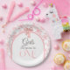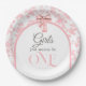 Toile de Jouy Pink Bow First 1st Birthday Decor Paper Plate