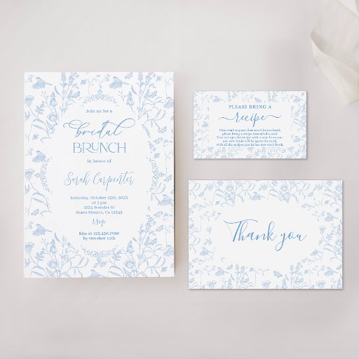 Toile Floral bridal Shower Recipe Card Request