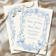 Elegant Toile de jouy Wedding invitations. Features love birds and butterflies with floral frame in blue on a light cream background. Perfect for a country French wedding. To make more changes go to Personalise this template. On the bottom you’ll see “Want to customise this design even further? Click on the EDIT using Design tool. From there you can change some of the fonts & some colours, move things around or delete what you need.