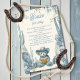 Celebrate the new parents to be with this Toile Cowboy Teddy bear, books for baby card.. Features baby cowboy Teddy Bear (can be deleted if wanted) surrounded by a cactus desert and succulents, in pale dusty blue on a light cream background. Perfect for a Wild West cowboy baby shower! To make more changes go to Personalise this template. On the bottom you’ll see “Want to customise this design even further? Click on the EDIT using Design tool. From there you can change some of the fonts & some colours, move things around or delete what you need. A little midjourney generativecontent combined with hand drawn elements