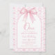 Toile Pink Bow Chinoiserie 1st Birthday Invitation