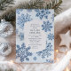 Get ready to welcome your bundle of joy this winter with our stunning blue toile snowflake baby shower invitation. This invitation features a beautiful display of navy and pastel blue snowflakes, surrounding a white notched frame and set against a frosty winter landscape. But these invitations aren't just a plain piece of paper - they are a treasured keepsake that you can personalise with ease using our user-friendly template. Don't miss the chance to make your baby shower a memorable and stylish event with our elegant invitation.