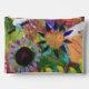 Abstract blue, peach, and purple flowers play on a field of green making this cosmetic and toiletry bag so fun to use!