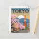 A vibrant and nostalgic depiction of Tokyo, Japan, known for its unique blend of traditional culture and modernity. The design captures iconic landmarks such as the Tokyo Tower, Senso-ji Temple, and bustling neighbourhoods like Shibuya and Shinjuku, all set against a backdrop of cherry blossoms and neon lights. Rendered in a vintage style, the artwork evokes the dynamic energy and rich heritage of Tokyo, inviting viewers to explore its cultural diversity and urban charm.