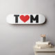 The name Tom with the letter o replaced with a red love heart. The colours can be changed.