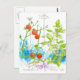 A botanical themed post card featuring ripe red cherry tomatoes and leafy green basil from the summer garden. Do you see the praying mantis?