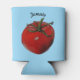 You can change the background colour and change the text on this can insulator sleeve. The image is derived from my original acrylic painting, Tomatoes.