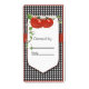 This tomato canning jar label has tomatoes with vines and places for the name and dated canned. The background is chequerboard in black and white. Great gift for the gardener in your life.