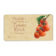 An illustration of a bunch of red tomatoes with green leaves, on a beige background with russet coloured text, made from a digital painting and photo. The label is set up for canning or bottling home made relishes, chutneys, ketchup and preserves. You can leave the date space to write in, or change to the date your product was made.