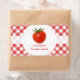 Personalise your jars of home made preserves! Customisable retro jar labels for homemade tomato sauce, ketchup and salsa, with fresh tomato on red and white gingham tablecloth pattern. Other fruits jam stickers also available.