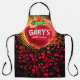 Stand out in the kitchen or your next BBQ party with this apron featuring a ripe tomato in pop art style with halftone and tomato sauce splatters, personalized with your name and funny message, perfect for you or your favorite messy cooking foodie.