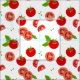 Tomatoes and Tomato Slices Pattern on White Fabric