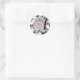 A tombstone nestled in a pile of black and white skulls with the optional text 'Happy Haunting 20XX". Add your name to personalise and enter any Halloween greeting you like to make this sticker special for your event. Search ID216 to see other products with this design.