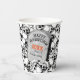 This paper cup Halloween design features a tombstone nestled in a pile of black and white skulls with the optional text 'Happy Haunting 20XX". Add your name to personalise and enter any Halloween greeting you like to make this cup special for your event. Search ID216 to see other products with this design.