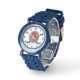 Letter T Tommy or Thomas boys single line name meaning heraldry knights shield kids wristwatch. Knights style shield monogram letter T art name simple numbered clock face perfect for in shades of red, blue yellow and grey. Personalise with your own name and name meaning for a unique personalised gift, this example is for names with the initial letter T and currently reads Tommy The Practical Twin. Other matching items and names available. Unique shield lion, crown, star, and letter T graphic art, name research, wording and design by Sarah Trett for www.mylittleeden.com and namesense