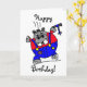 Tommy the Hippo has a bee on his nose and a mangled pogo stick. Written around him is "Happy Birthday!". See matching envelope and stamp.