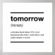 This is a smart design. tomorrow (noun) a mystical land where 99% of all human productivity, motivation, and achievement is stored The design features helvetica style lettering in black. This poster is perfect for present