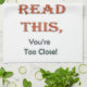 A funny text that's sure to put a smile on everyone’s face. The text says:If you can read this,you're too close.