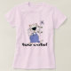 A white with brown stripes kitty cat holding a lilac flower and text that reads "Too Cute!" on cat T-shirts, mugs, buttons, bags, and more.