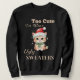 "Too cute to wear ugly sweaters" with a cute kitten in a Santa hat