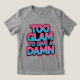Stylish unisex T-shirt featuring the bold phrase “Too Glam to Give a Damn” in chic typography. Perfect for fashion-forward individuals with a confident attitude, this shirt blends comfort with personality. Great gift idea for friends, birthdays, or anyone who embraces their glamourous side without the drama.