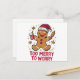 Too Merry To Worry Funny Gingerbread Christmas Holiday Postcard