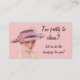 This housekeeping business card features a vintage image of a woman, on a pink background. The text, and background colour, can be customised to fit your needs.