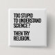 Too stupid for science? Try Religion 15 Cm Square Badge