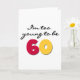 I'm too young to be 60! If the 60th birthday seemed to creep up on you, if you refuse to get any older, at least in spirit, or if you're looking for a great gift for the person turning 60 years old that can be used the entire year you'll love this black, red, and yellow text design.