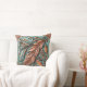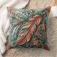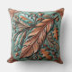Western Tooled Leather Print with Feathers and Leaves Throw Pillow in turquoise and copper