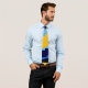 Abstract geometric pattern of diagonal stripes with teeth pointing upward. All shades of blue interspersed with yellow stripes. Ideal for the modern man's tie. Awesome tie design for yourself or as a gift.