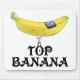 "Top Banana" design. A little man holds up a giant banana standing on the words "Top Banana". Apparently the term comes from theatrical slang, the top banana was the comedian at the top of the bill as opposed to the second banana who was second on the bill. It seems to be popular expression these days, always makes me laugh. :)