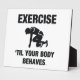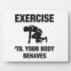 Exercise Til Your Body Behaves slogan with cross-training theme. If your a man or woman who likes to workout hard, then get this black/white logo for the weightlifting, running, and workout crowd.