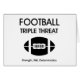 It's football season and time for the games to begin. Get a Football Triple Threat; Strength, Skill, Determination for the practice session, football game, or at home. Great for coaches, players, parents, and fans from pee wee to high school to college to pros. Clean, strong graphic in black and white.