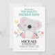 Top Koality Baby Koala First Birthday Invitation - This “aussie-ome” koala birthday invitation is almost too much sweetness to “bear”. Australia's loveable and well known koala bear is featured here playing happily with some very friendly butterflies. Now we know we're “koala-fied” to present this ultra cute first birthday invitation, guaranteed to set the right tone for your little koala's birthday extravaganza.