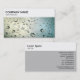 A business card template with a 0.6" (15.24mm) white top panel and space for a photo or image underneath. Available with a variety of attractive images or you can add your own image. Company Name and Business type/Quote on the front top panel positioned to the left. The same basic layout is repeated on the reverse side of the card but without the photo. The Name and Job title are on the left of top panel the same as the details on the front of the card. The Address, Telephony, Web and email details are in the lower area aligned to the right in the lower area. The lower area has a flat colour background which can also be customised. This template can be used as is or can be further customised. Aside from offering the opportunity to display photos of your products or images relevant to your business The photo area is particularly suitable to a variety of decorative images, photos from nature e.g. details of flowers and trees or even entirely abstract designs and decorative patterns etc. The template also offers plenty of space to add additional logos e.g. in the top right of the top panels.