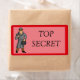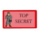 A fun top secret sticker that is great for kids. Text with a cartoon spy.