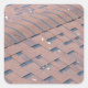 Top view of brown roof shingles with a few fallen leaves on the surface. Selective focus with a blurred background.