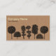 A modern business card with an attractive original motif consisting of seven hand drawn stylised topiary style tree or shrubs. The company details are on the front with name and contact details on the reverse side with an extended version of the front motif along the bottom.Suitable for a variety of businesses. Ready to be customised. The background colours are also customisable.